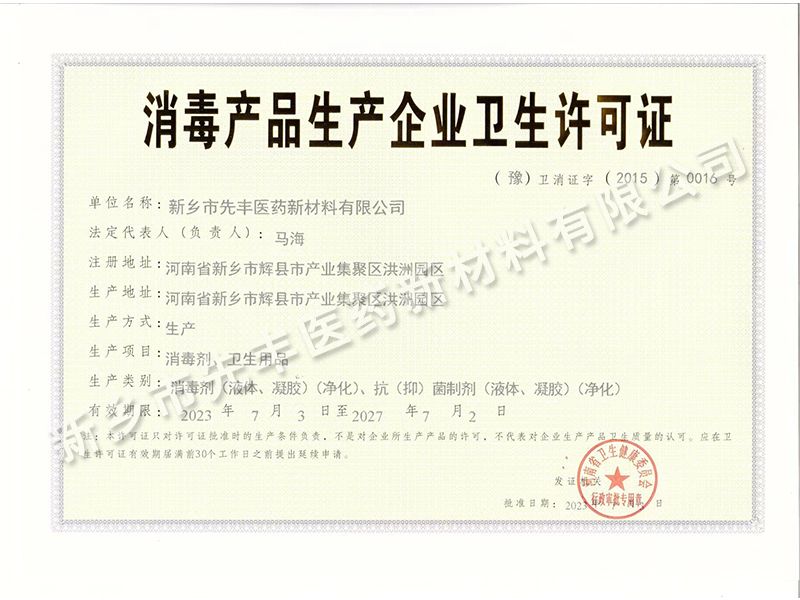 消毒產(chǎn)品生產(chǎn)企業(yè)衛(wèi)生許可證